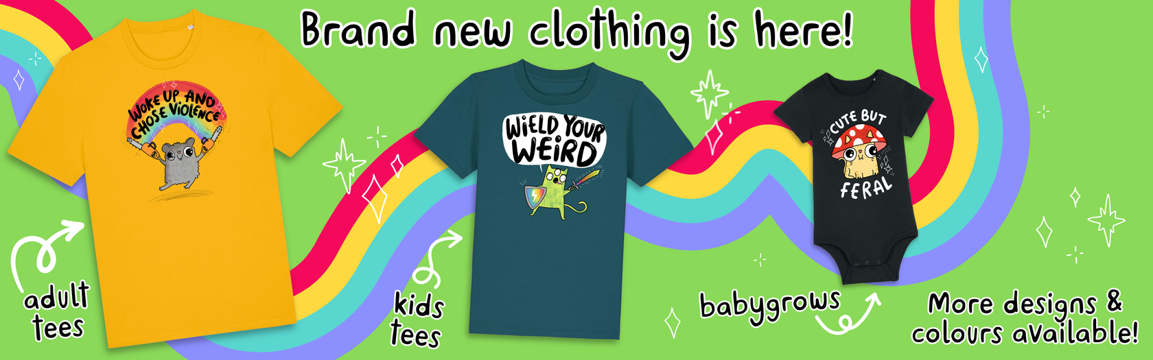 Made by weirdos for weirdos. Our rainbow shop is for everyone . We aim to bring a smile to your face with our cute gifts, cards, accessories and more all designed in Derbyshire by Katie Abey. Katie has been an illustrator for many years and her work is created to uplift and feel supportive. She is passionate about making people feel proud of their individuality and all of the things that set them apart from others. Embrace your weirdness.