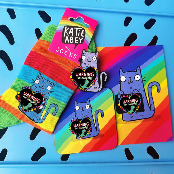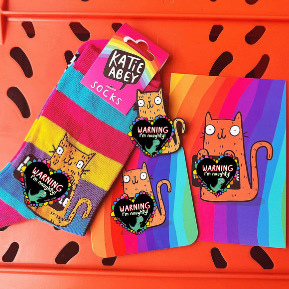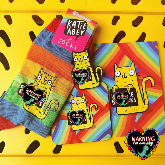 The Katie Abey x Soctopus sock collab has landed, and it’s sassier than ever! Bursting with rainbow stripes, rude cats, and cheeky phrases, these socks are here to bring colourful cosy chaos!
