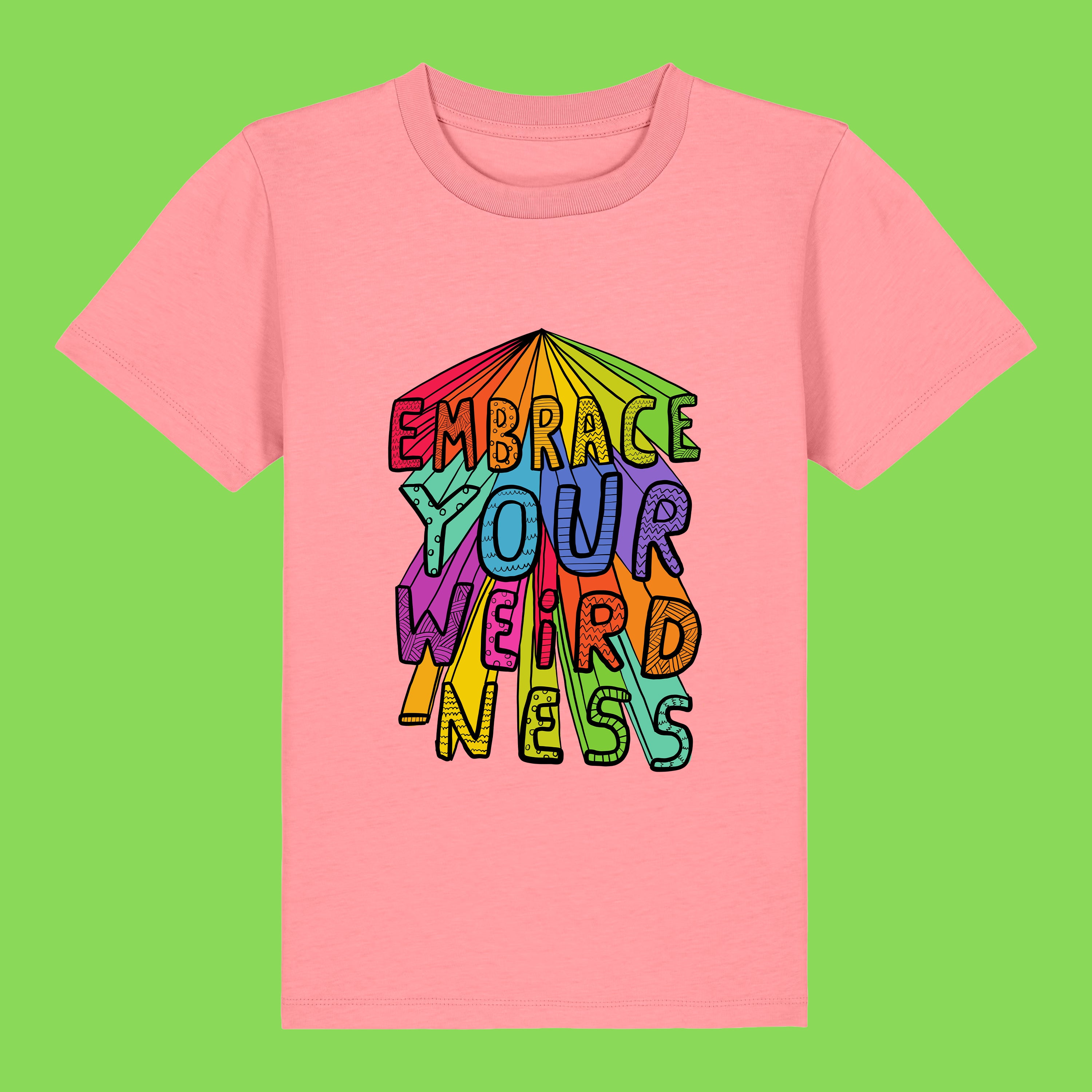 Featuring joyful rainbow artwork by Katie Abey, this comfy kids t shirt is all about confidence, creativity and letting your weird little light shine. Perfect for everyday adventures, messy play and big personalities.