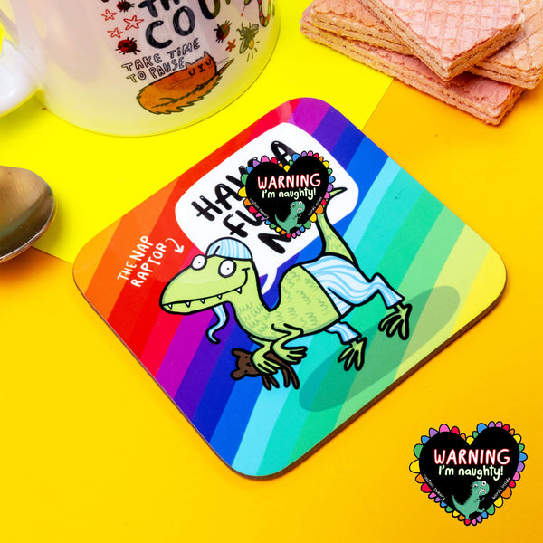 Whether it’s for your desk, bedside table, or coffee nook, the Nap Raptor Coaster is a fun and functional reminder that naps are always a good idea. 🦖💤 Grab one today and let the Nap Raptor roar you into relaxation! 🌟✨