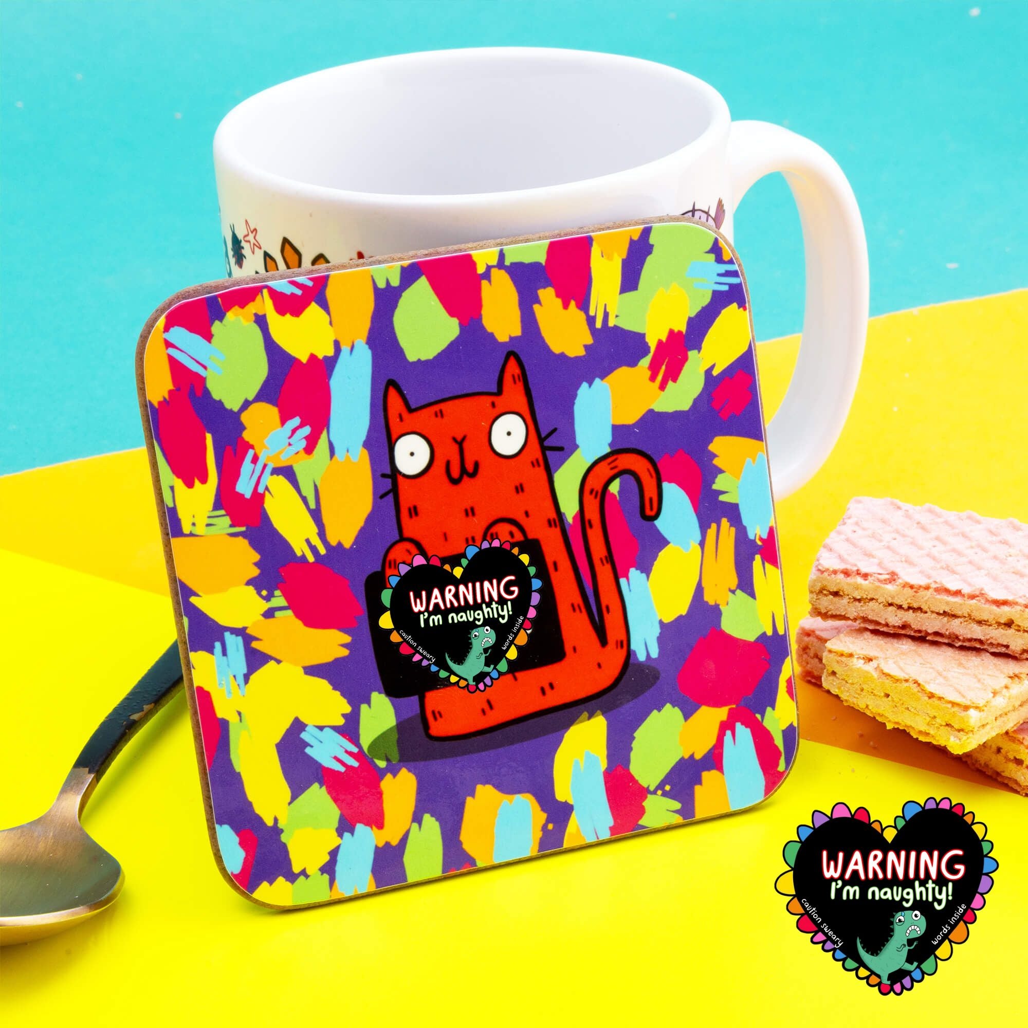 Give your coffee table some sass with this Sweary Cat Twat Coaster! Artfully printed with a colorful sweary cat, you'll be able to have your cuppa in style, without the worry of leaving pesky rings. Now that's what I call meow-sic to your ears!