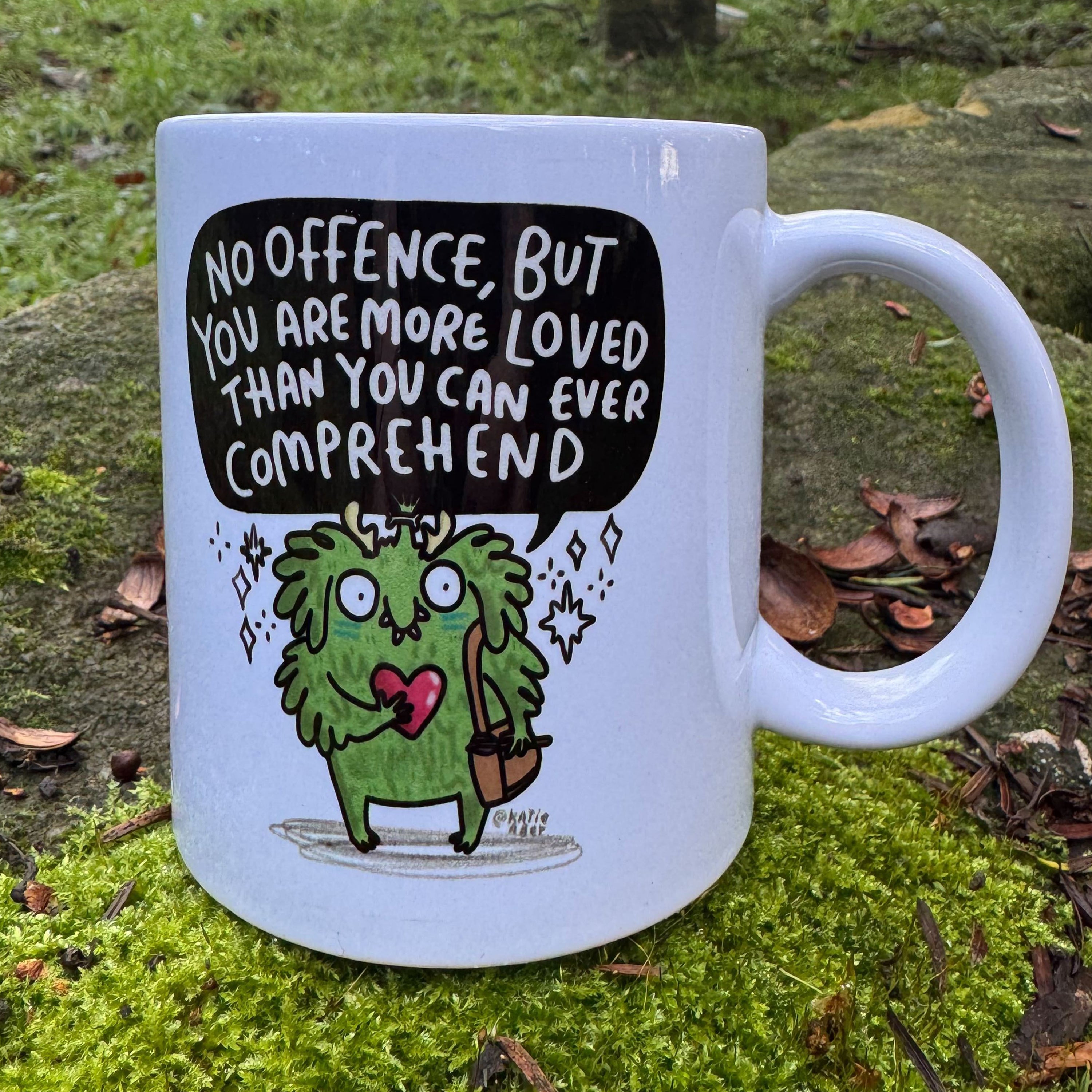 The You Are More Loved Than You Can Ever Comprehend Mug is here to gently shout reassurance at you every time you need a brew and a reminder that you matter. Drawn by Katie Abey, this mossy themed affirmation mug bundles kindness, humour and unapologetic appreciation into one comforting cuppa companion. Ideal for gifting or keeping for yourself because you absolutely do deserve nice things.