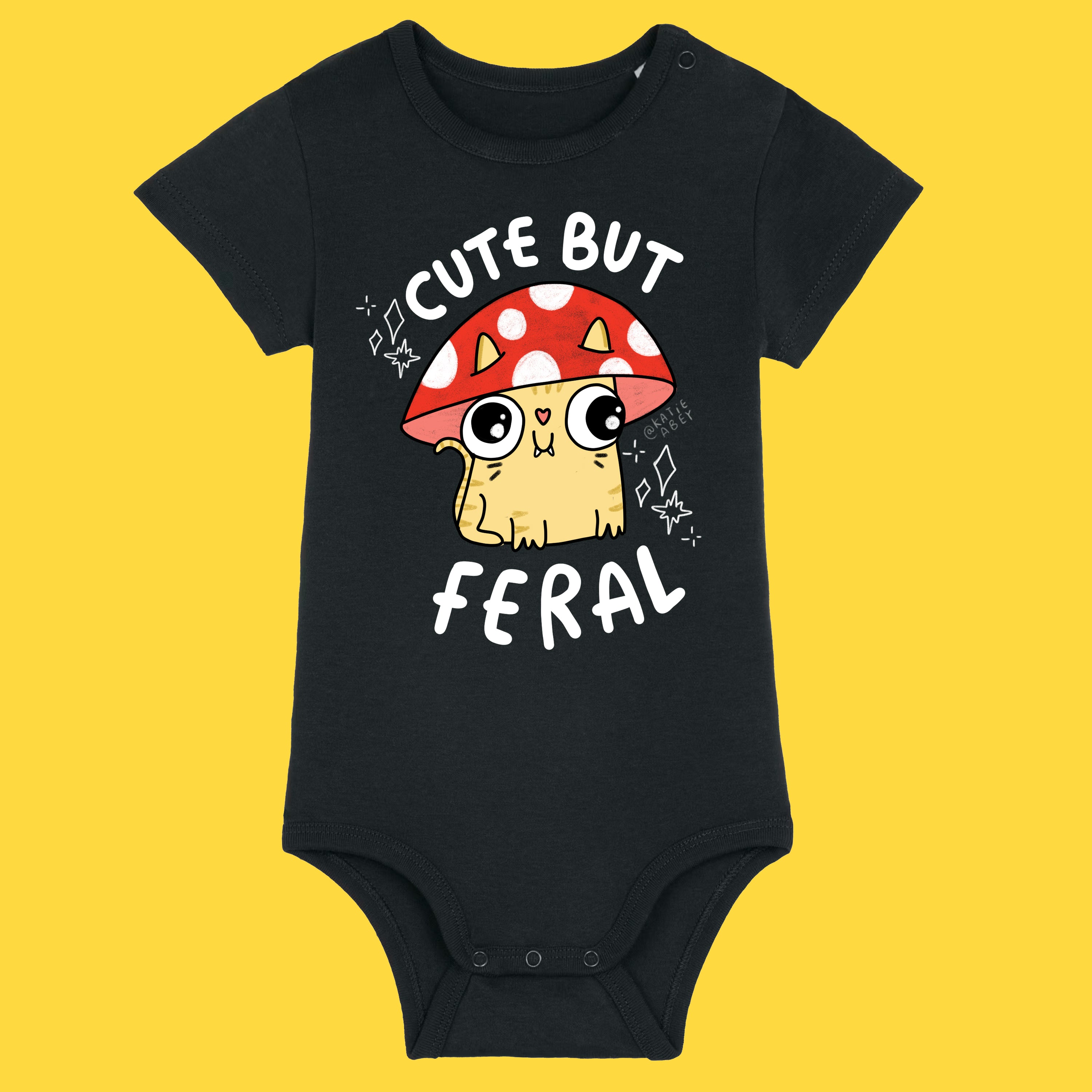 Tiny but chaotic. Cute but absolutely feral. This baby grow features Katie Abey’s iconic Cute But Feral Cat artwork and is perfect for small humans with big gremlin energy!