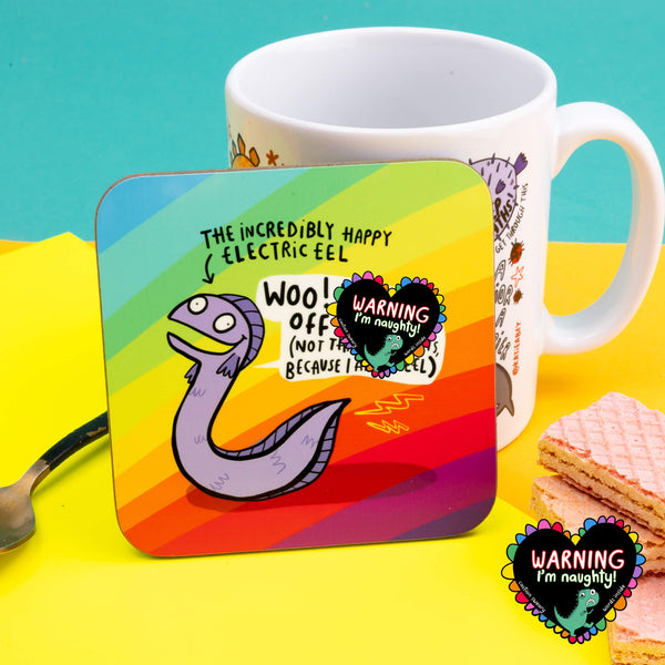 Make a splash at your table with the Incredibly Happy Electric Eel Coaster! Featuring a rainbow background and a delightfully eccentric eel who’s clearly off their fins, this quirky coaster is the perfect way to brighten up your drink breaks. Whether it’s tea, coffee, or something a little stronger, this eel’s got your back (and your surfaces). 🎉🐟