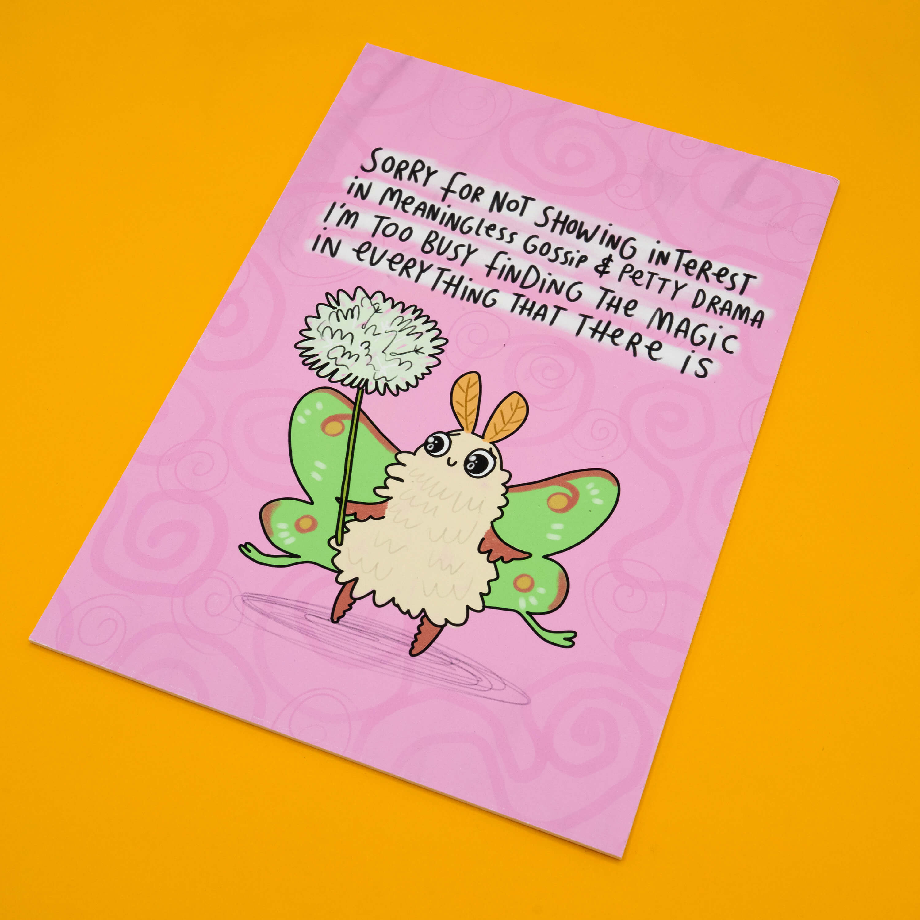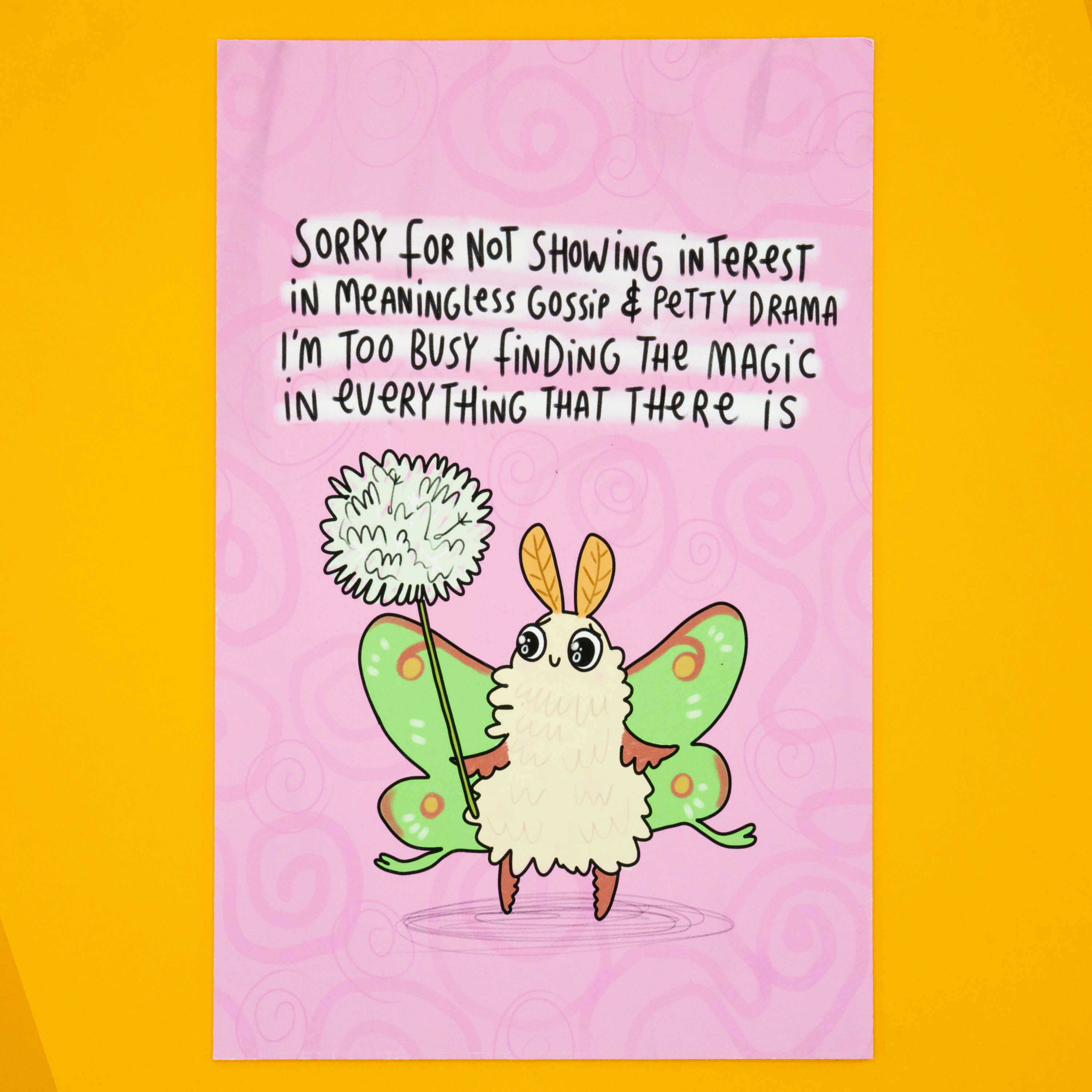 This moth has zero time for petty drama and is wayyyy too busy sprinkling magic everywhere it goes. Designed by Katie Abey, this limited edition art print is here to remind you to stay weird, stay wonderful, and keep your eyes on the magic, not the nonsense. ✨