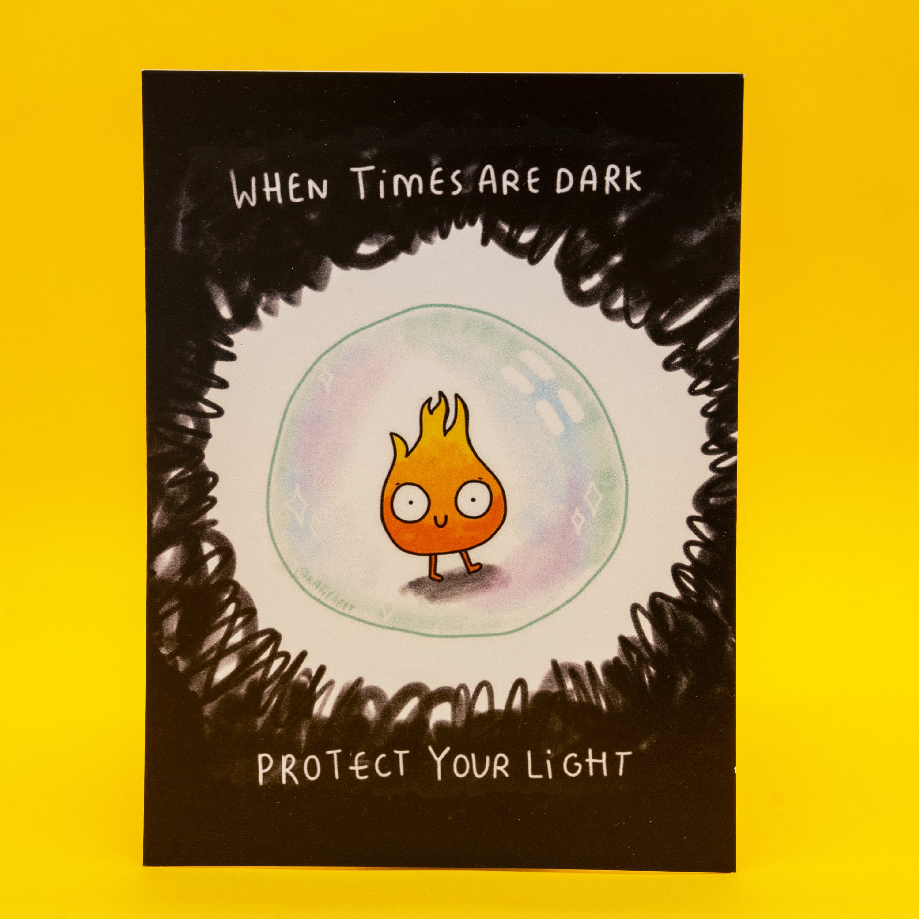 This adorable yet powerful A6 postcard by Katie Abey is here to remind you, your best mate, or that chaotic creative in your life that their sparkle deserves protection. Featuring a cute little flame hiding safely in a bubble, this uplifting art postcard is perfect for anyone who refuses to dim themselves for the world.