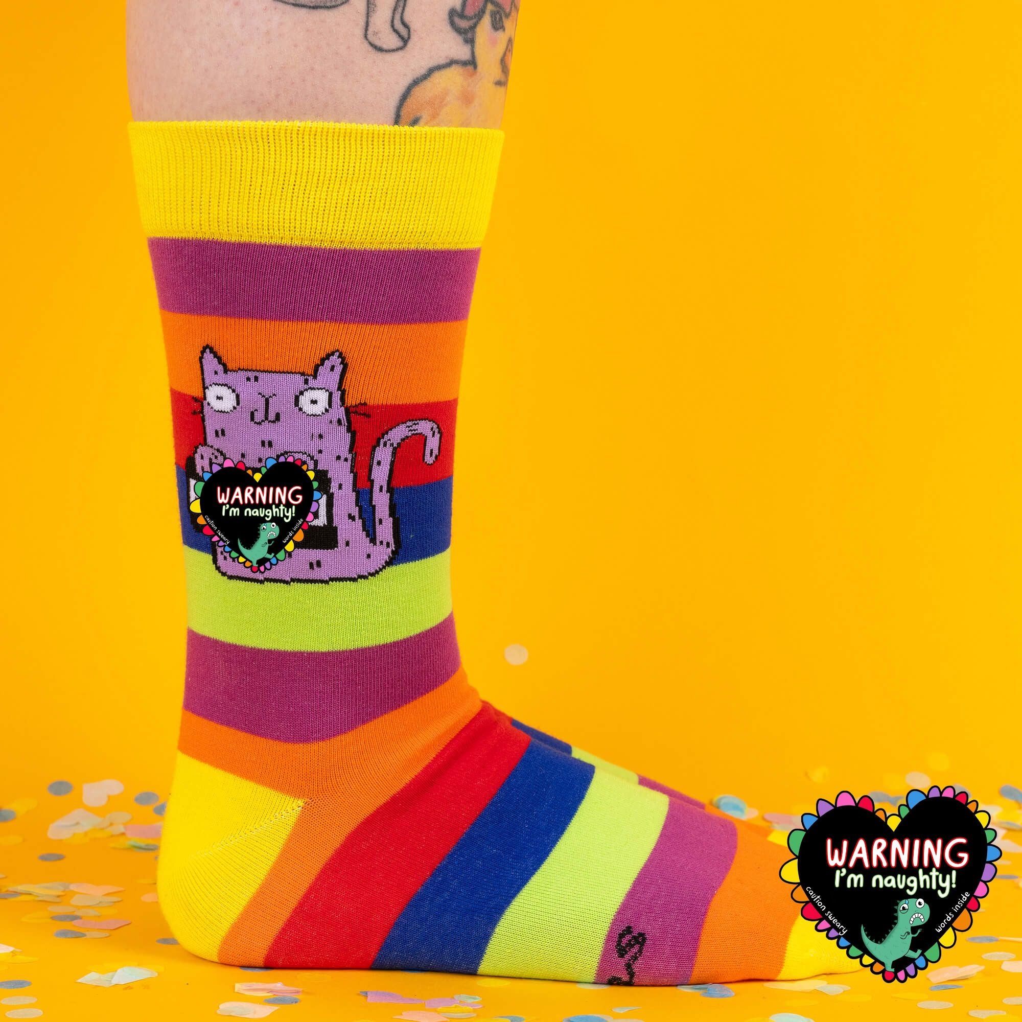Sweary Rude Purple Cat Rainbow Socks