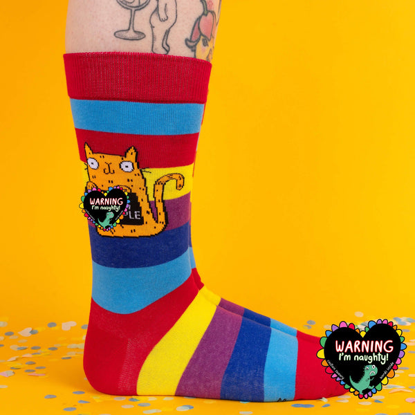Sweary Rude Orange Cat I Hate People Rainbow Socks