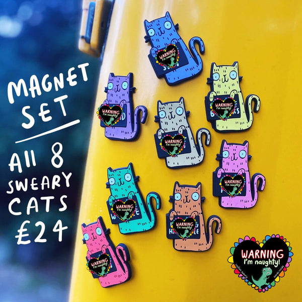 Magnet Set – All 8 Sweary Rude Cat Magnets (Bulk Discount) 🐾✨