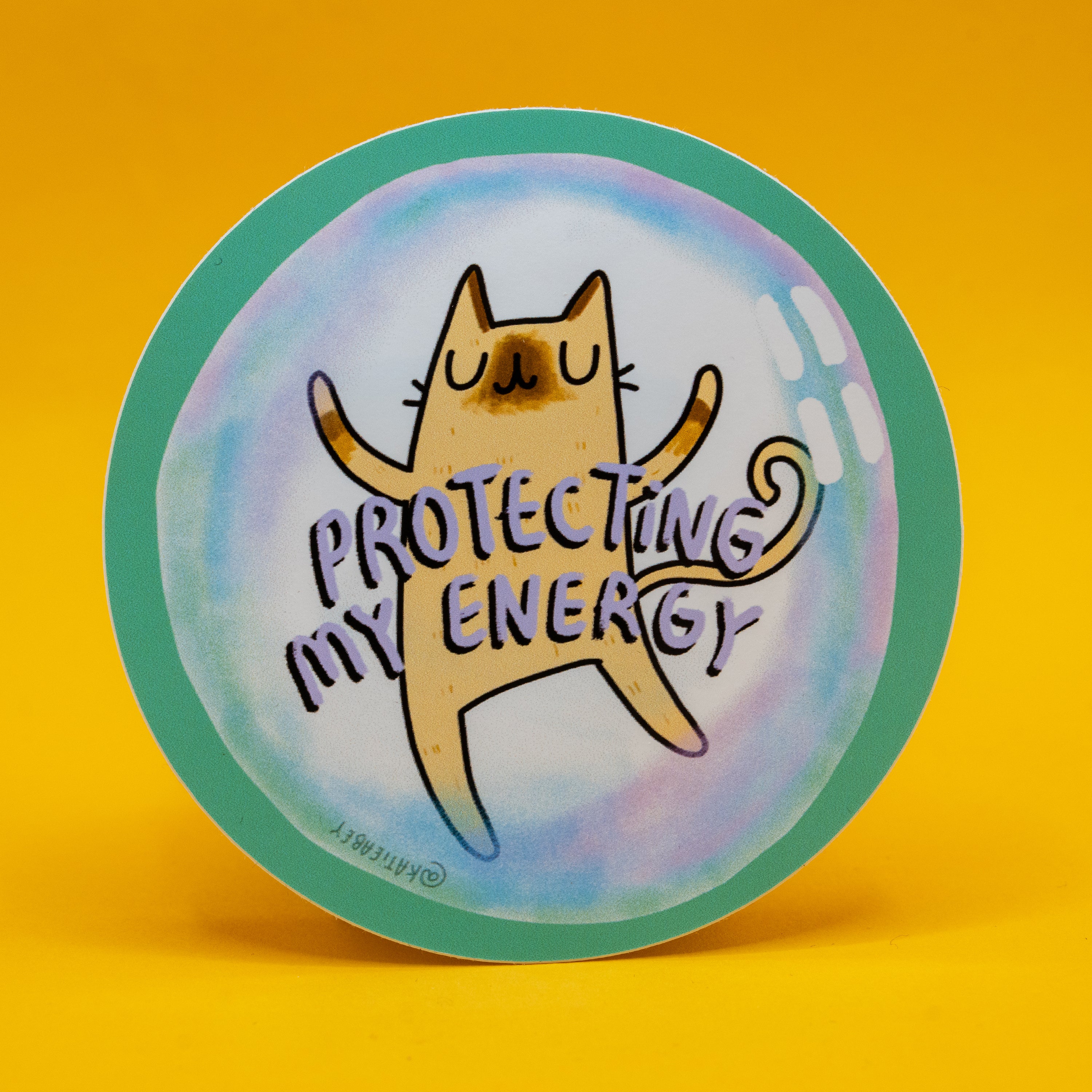 Protecting My Energy Cat Vinyl Sticker